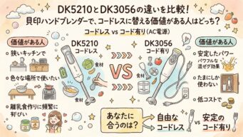 ハンドブレンダー DK5210とDK3056の違いを比較!貝印ハンドブレンダーで、コードレスに替える価値がある人はどっち?