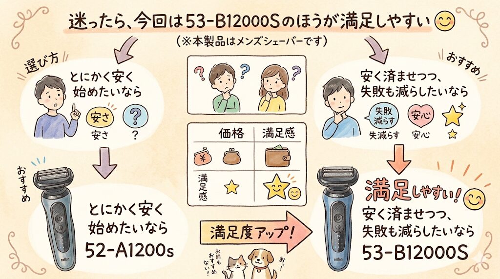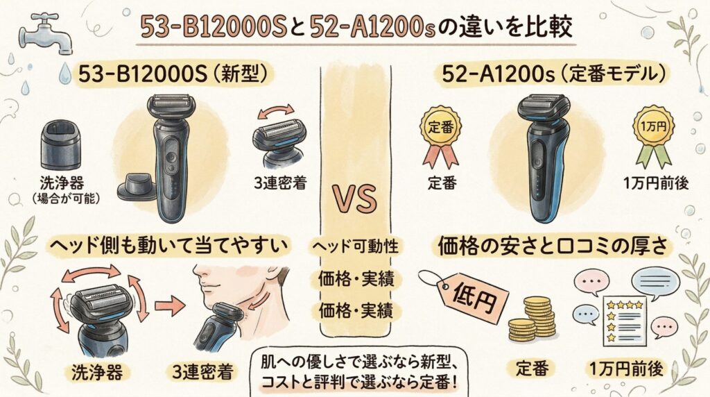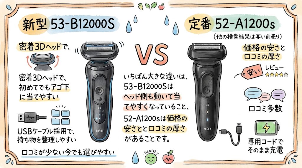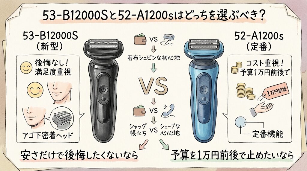 新生活で初めて電気シェーバーを買うとき、そんな悩みで止まりやすいのが 53-B12000S52-A1200s です。