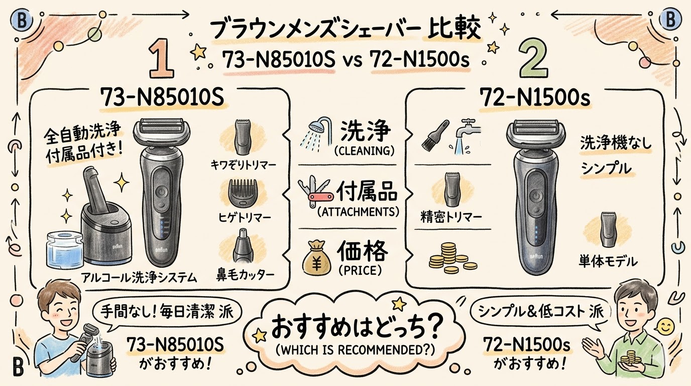 この記事では、73-N85010S72-N1500s の違いを、深剃り性能・使いやすさ・価格差の3つでわかりやすく整理します。