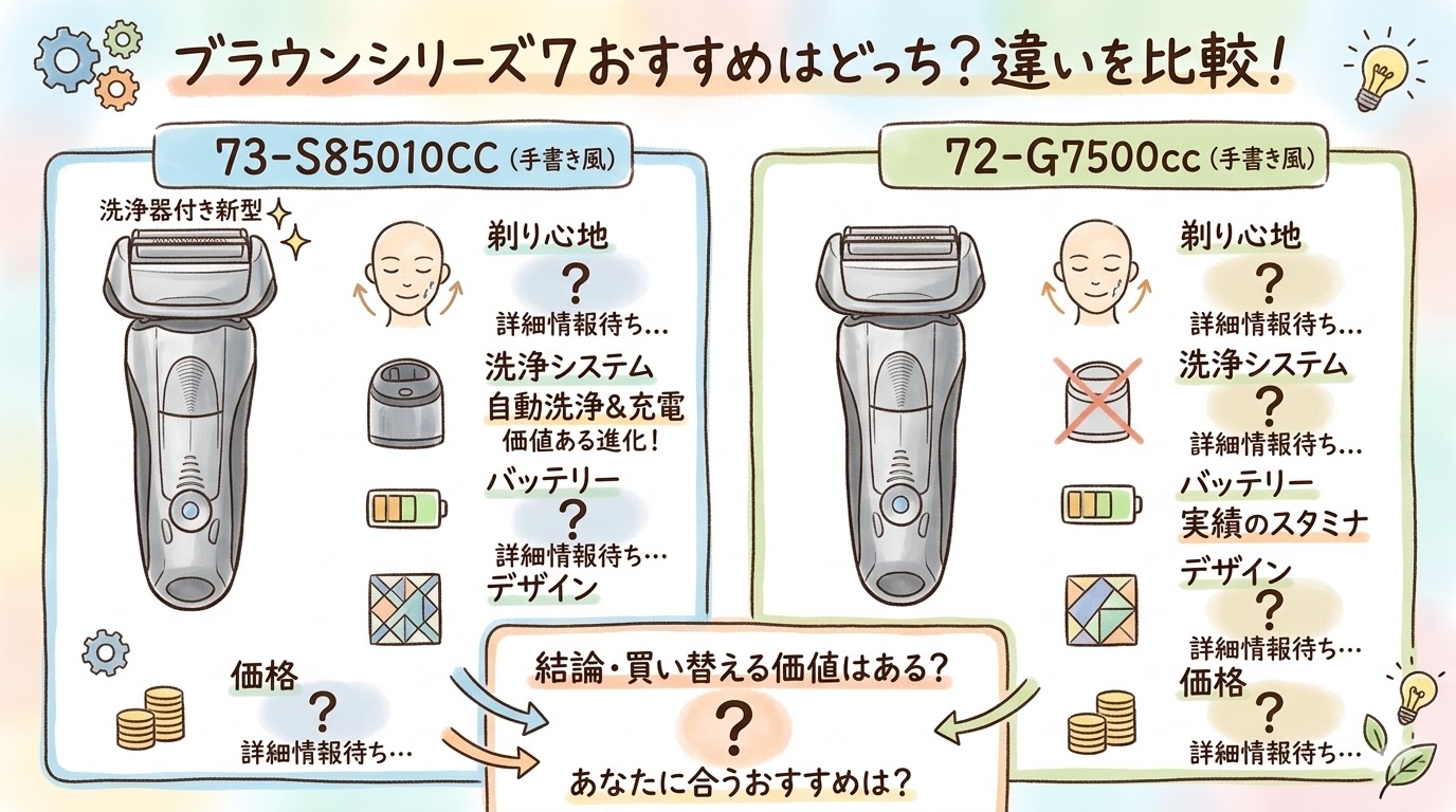 この記事では、73-S85010CC72-G7500cc の違いを、手入れのラクさと深剃り満足度のバランスでわかりやすく整理します。