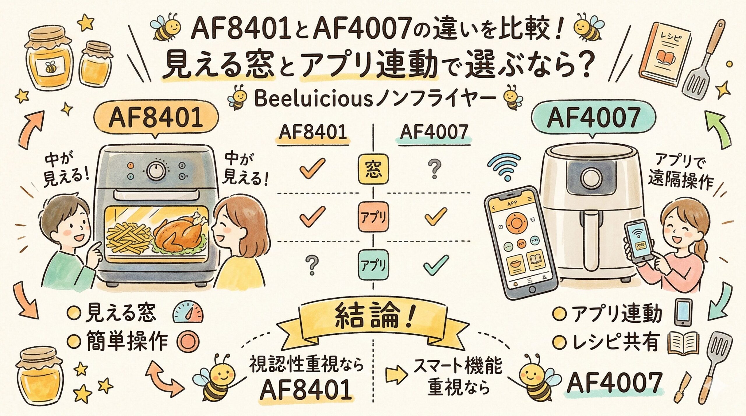 2026年3月25日時点で調べると、Beelicious公式では新型に BAF-8401、商品一覧では AF8401、レシピでは AF-8401 という表記が混在しています。