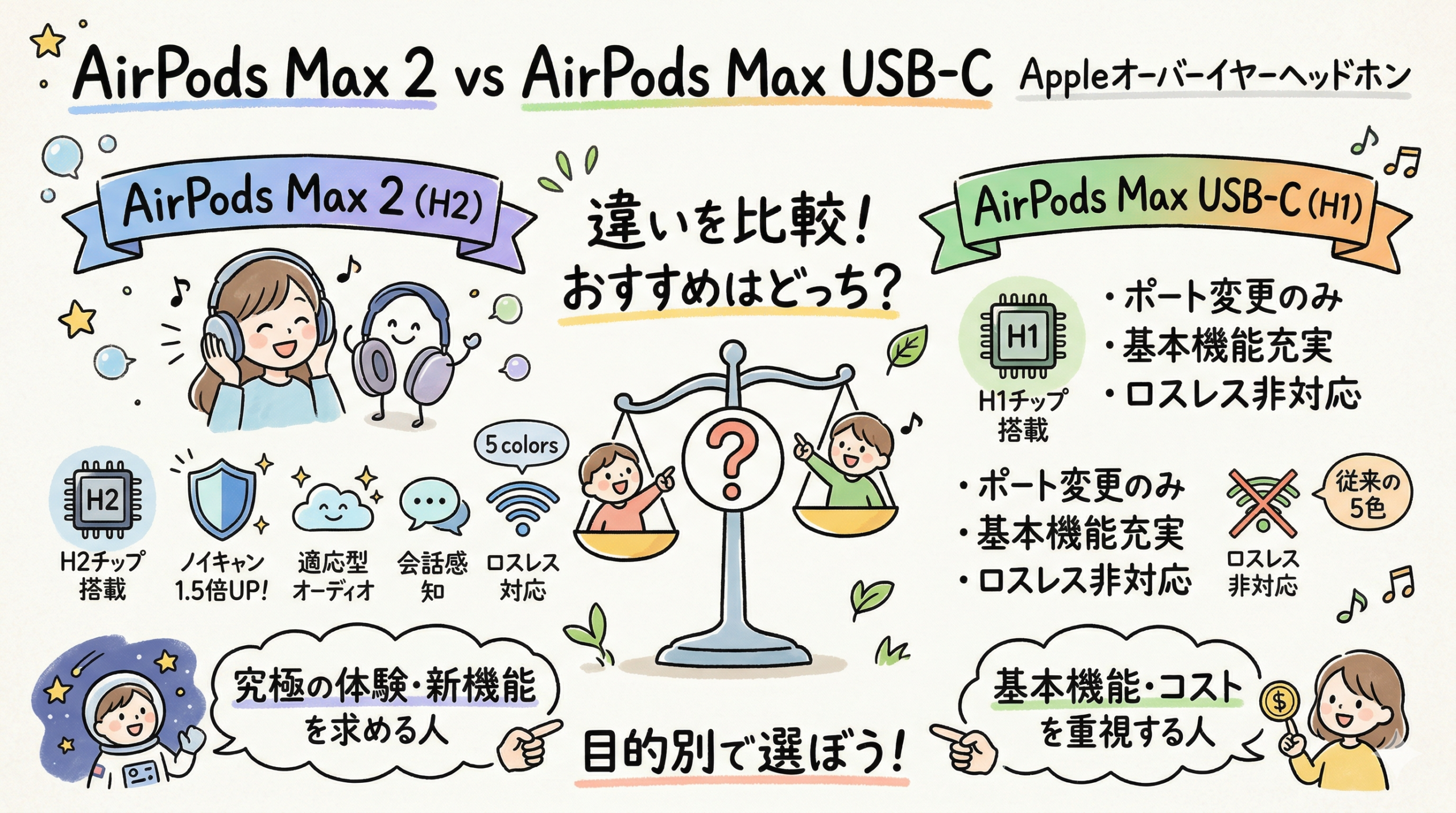 「AirPods Max 2が気になる。でも、5,000円高いだけならAirPods Max USB-Cで十分では?」