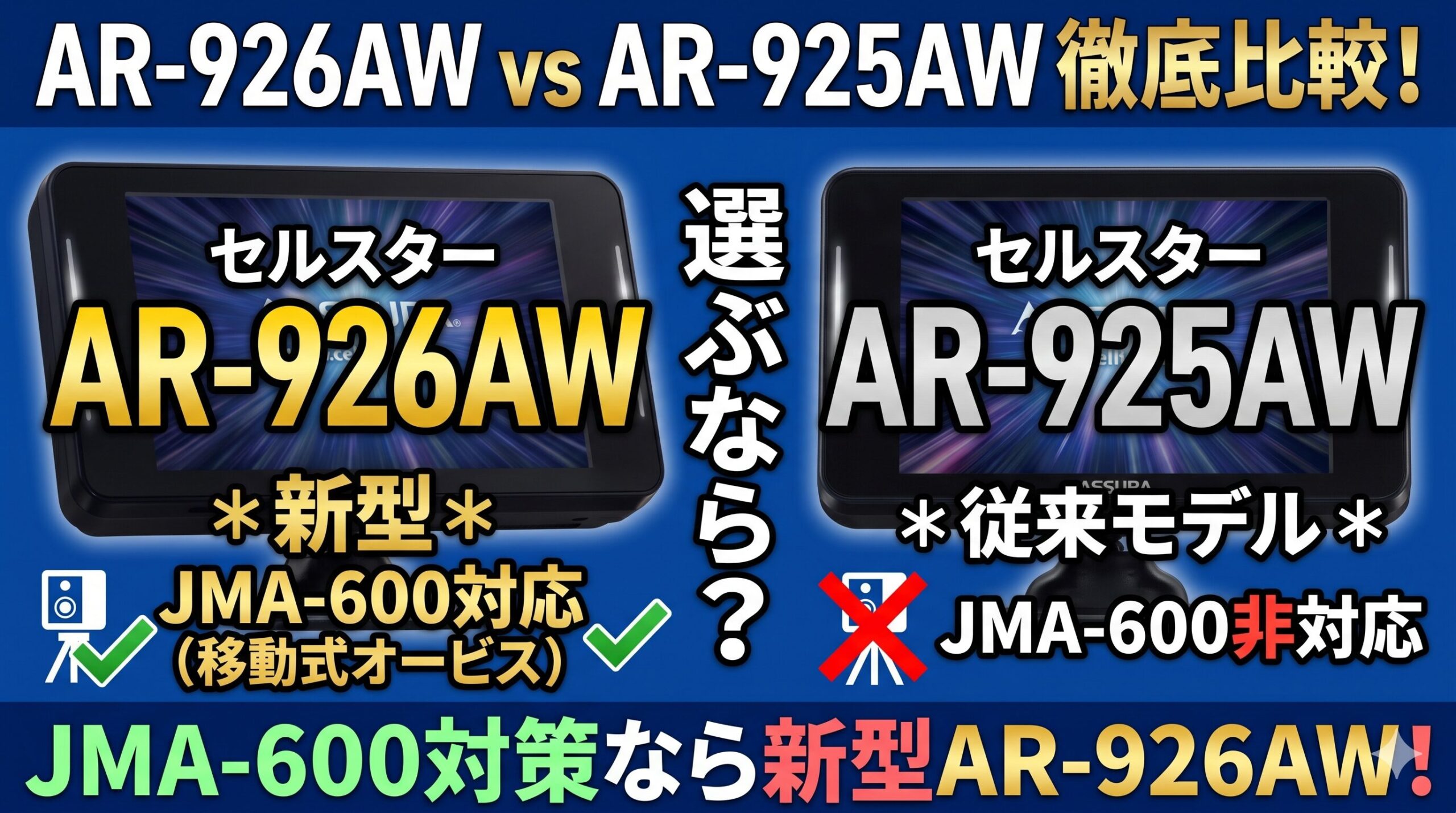 この記事では、AR-926AW AR-925AW 違いを、JMA-600対応・MSSS・誤報識別・GPSデータ更新・OBD2・価格差の意味から整理します。