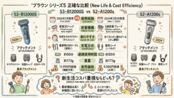 シェーバー 53-B12000Sと52-A1200sの違いを比較!新生活でコスパ重視ならどっち?ブラウンメンズシェーバー