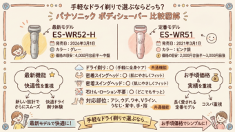 シェーバー ES-WR52-HとES-WR51の違いを比較!手軽なドライ剃りで選ぶならどっち?パナソニック ボディシェーバー