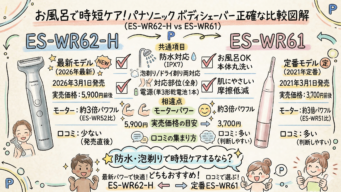 シェーバー ES-WR62-HとES-WR61の違いを比較!防水・泡剃りで時短ケアするなら?パナソニックボディシェーバー