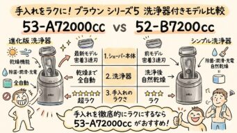 シェーバー 53-A72000CCと52-B7200ccの違いを比較!洗浄器付きで手入れをラクにするならどっち?ブラウンメンズシェーバー