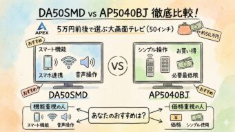 DA50SMDとAP5040BJの違いを比較!5万円前後で大画面テレビを選ぶなら?APEXテレビ