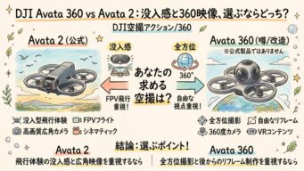 Avata 360とAvata 2の違いを比較!没入感ある空撮や360映像で選ぶなら?DJI空撮アクション/360