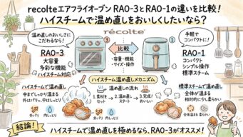 ノンフライヤー RAO-3とRAO-1の違いを比較!ハイスチームで温め直しをおいしくしたいならどっち?recolteエアフライオーブン