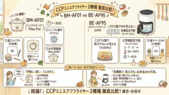 ノンフライヤー BOE122とAF080Jの違いを比較!口コミからわかった、見た目も使いやすさも欲しいならどっち?BRUNOガラスエアフライヤー