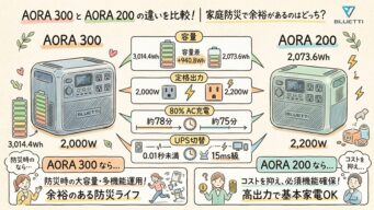 ポータブル電源 AORA 300とAORA 200の違いを比較!家庭防災で余裕があるのはどっち?BLUETTIポータブル電源