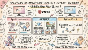 モニター MAG 275UPD E14とMAG 274UPDF E16Mの違いを比較!4K高画質と高fpsの両立で選ぶなら?MSIゲーミングモニター