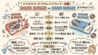SHARK BURGERとSOUND BURGERの違いを比較!おすすめはどっち?オーディオテクニカのポータブルレコードプレーヤー