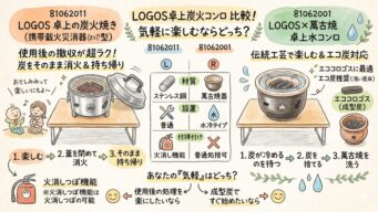 81062011と81062001の違いを比較!卓上で炭火焼きを気軽に楽しむならどっち?LOGOS卓上炭火コンロ