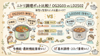 OG2G03とLD2S02の違いを比較!ニトリ調理ポットは新型と型落ちどっちを選ぶべき?