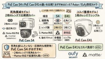 PoE Cam S4とPoE Cam E41の違いを比較!おすすめはどっち?Anker / Eufy防犯カメラ