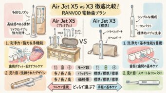 Air Jet X5とAir Jet X3の違いを比較!洗浄力と見た目で選ぶならどっち?RANVOO電動歯ブラシ