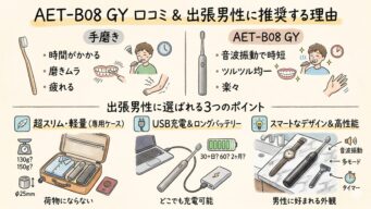 AET-B08 GYの口コミは?手磨きと比較してわかった、出張が多い男性に向く理由【アピックス電動歯ブラシ】