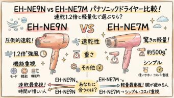 ドライヤー EH-NE9NとEH-NE7Mの違いを比較!速乾1.2倍と軽量化で選ぶなら?パナソニックヘアドライヤー