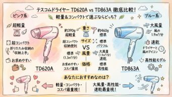 ドライヤー TD620AとTD863Aの違いを比較!軽量&コンパクトで選ぶなら?テスコムヘアドライヤー