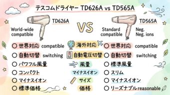 ドライヤー TD626AとTD565Aの違いを比較!海外対応と自動電圧切替で選ぶなら?テスコムヘアドライヤー