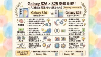 スマートフォン Galaxy S26とGalaxy S25の違いを比較!AI機能と電池持ちで選ぶなら?Samsungスマートフォン