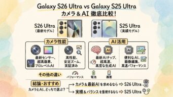 スマートフォン Galaxy S26 UltraとGalaxy S25 Ultraの違いを比較!カメラ性能とAI活用で選ぶなら?Samsungスマートフォン