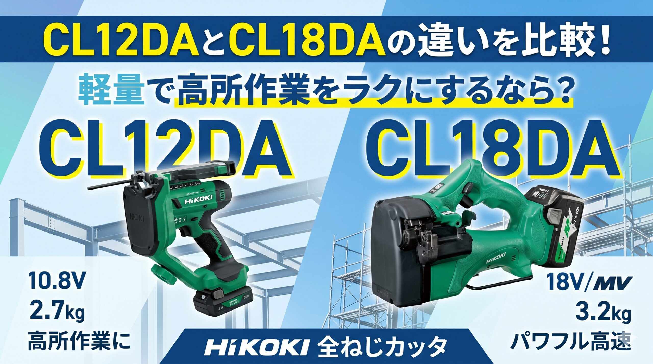 CL12DAとCL18DAは、どちらもHiKOKIのコードレス全ねじカッタです。