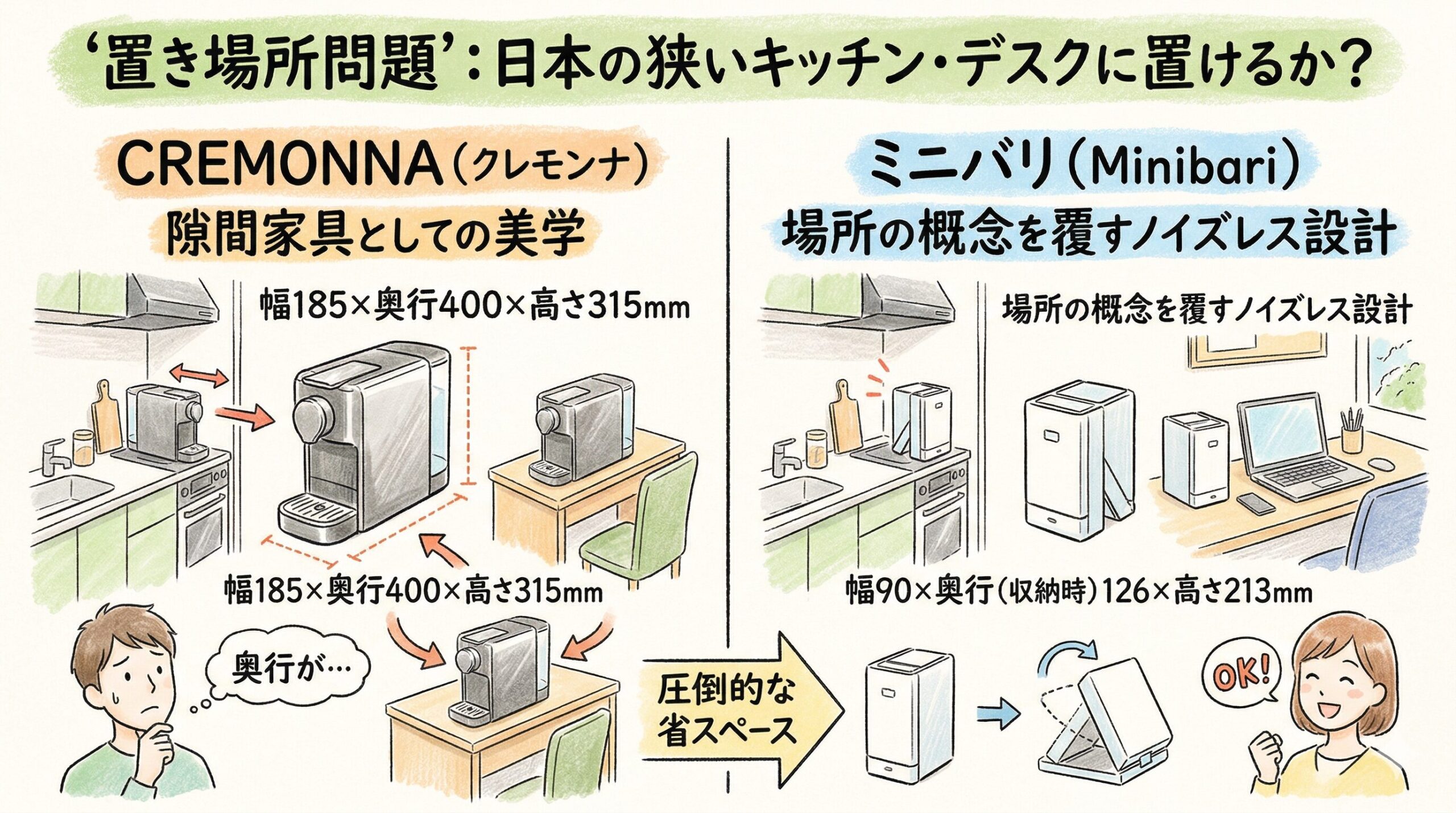 「置けるか置けないか」で悩む必要はゼロ。物理的な制約でエスプレッソを諦めていた人にとって、これは福音です。