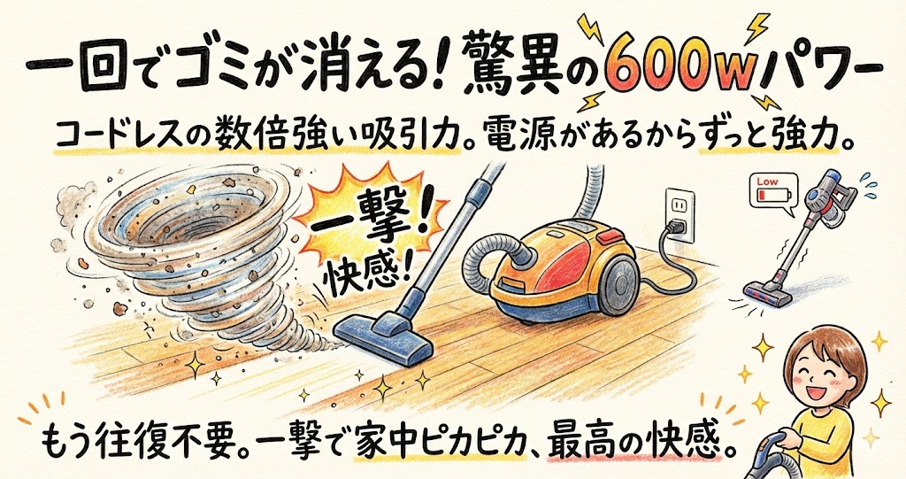 600Wの威力!コードレスには戻れない「吸引力」の真実