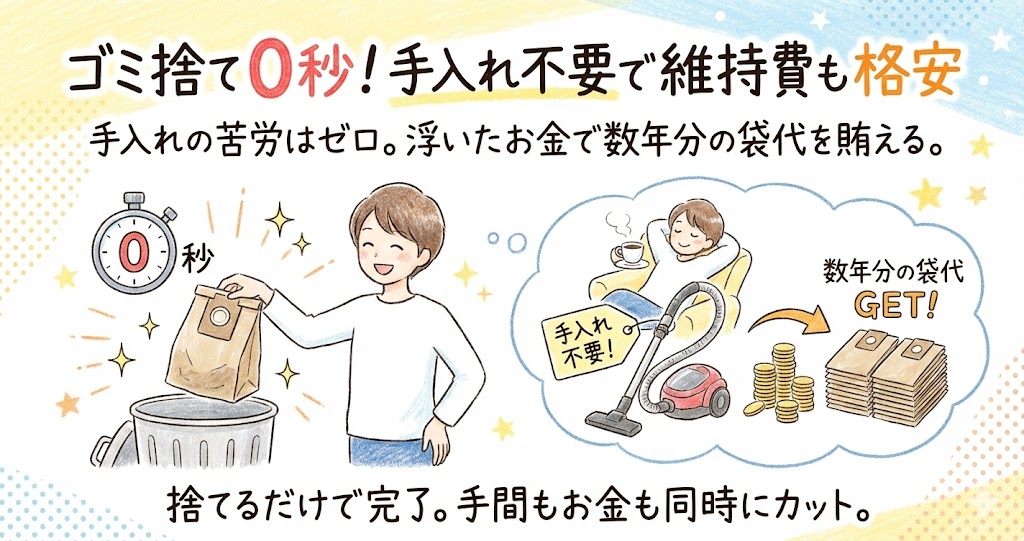 逆に、サイクロン式の手間(フィルター水洗い、乾燥24時間待ち、プリーツのホコリ取り)を時給換算すれば、紙パック代の方が遥かに「安い」と言えるのではないでしょうか。