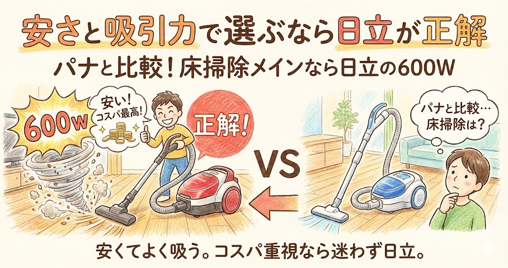 「安くて、軽くて、とにかくよく吸う」というコストパフォーマンスの観点では、日立のKV70Mが頭一つ抜けています。