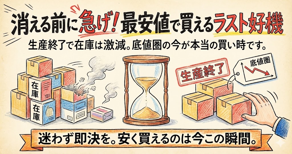 在庫が少なくなると、逆に希少価値で価格が上がり始めることさえあります。