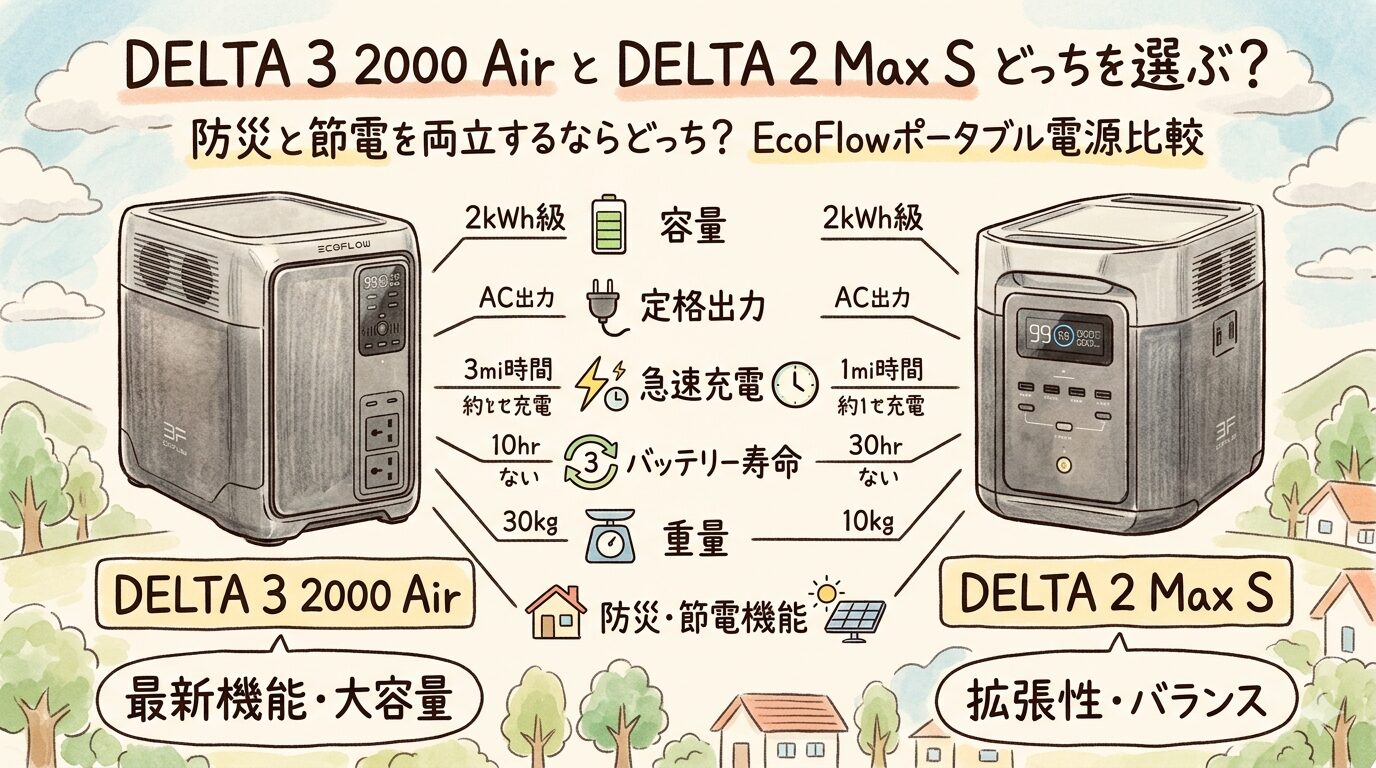 DELTA 3 2000 AirとDELTA 2 Max Sの違いを比較!防災と節電を両立するならどっち?EcoFlowポータブル電源