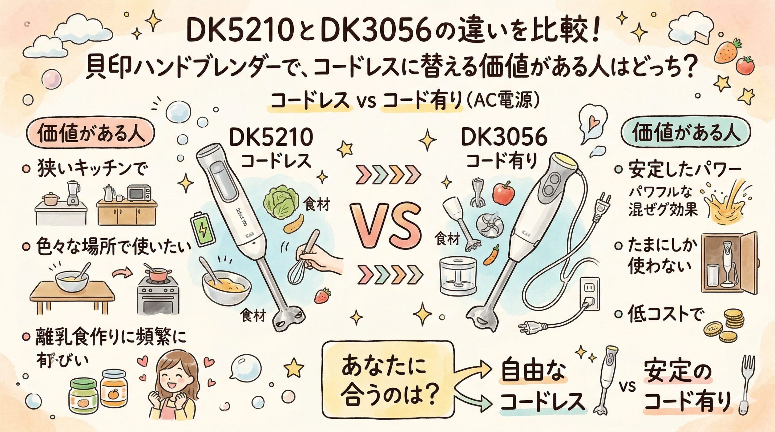 つまり、DK5210 だけだと「なめらか系」に強く、DK5211 まで足すと「下ごしらえ時短」まで一気に広がります。