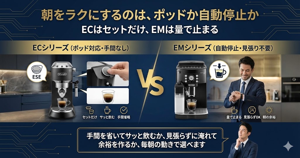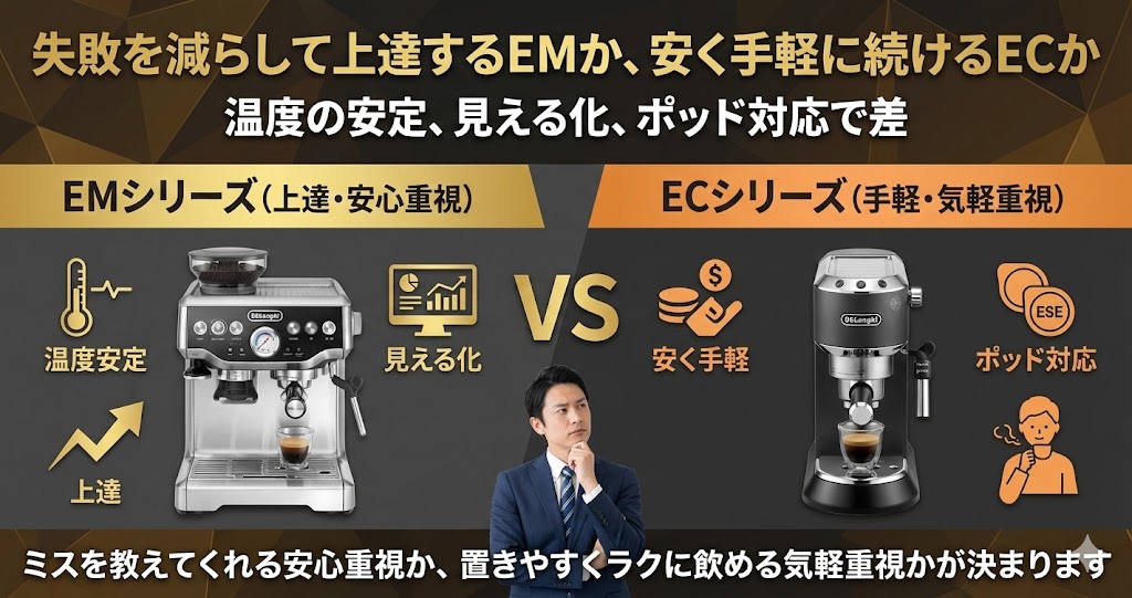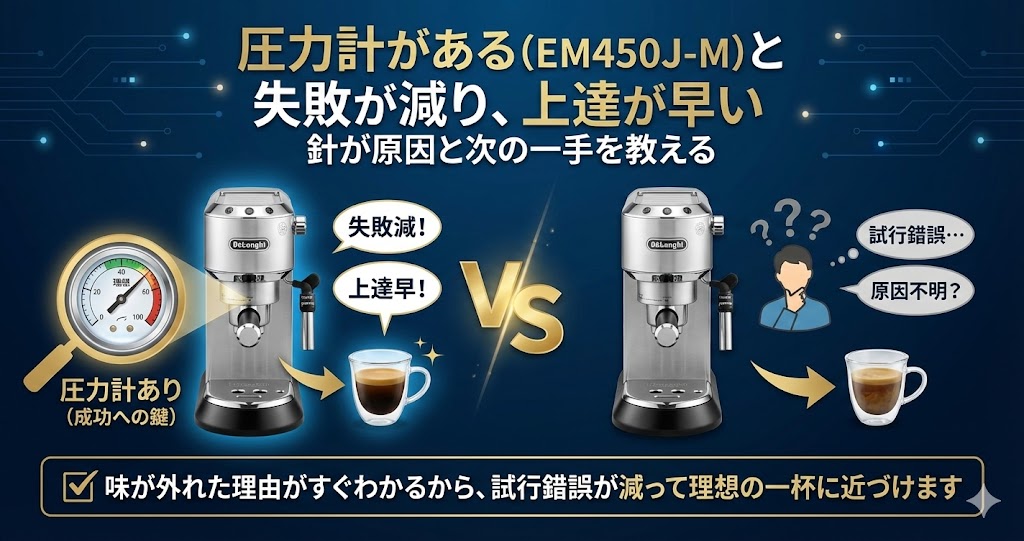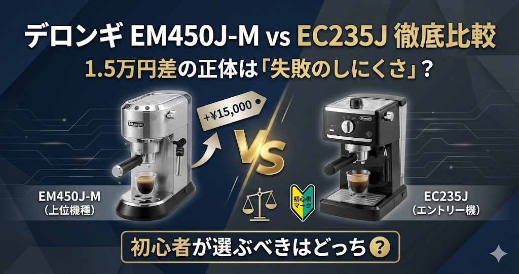 デロンギ EM450J-M vs EC235J 徹底比較|1.5万円差の正体は「失敗のしにくさ」?初心者が選ぶべきはどっち?