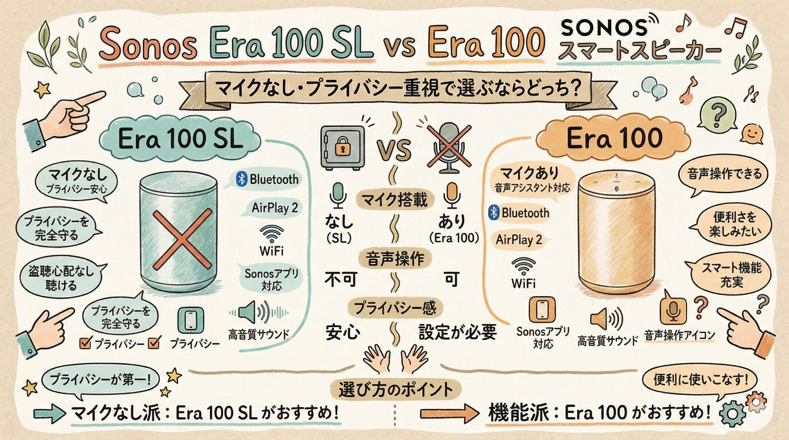 - 結論:マイクなしの安心感を取るならEra 100 SL、3,000円で余白を買うならEra 100