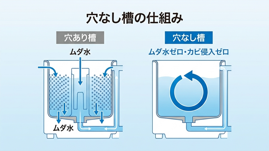 そもそも「穴なし槽」とは?シャープだけが持つ3つの特権