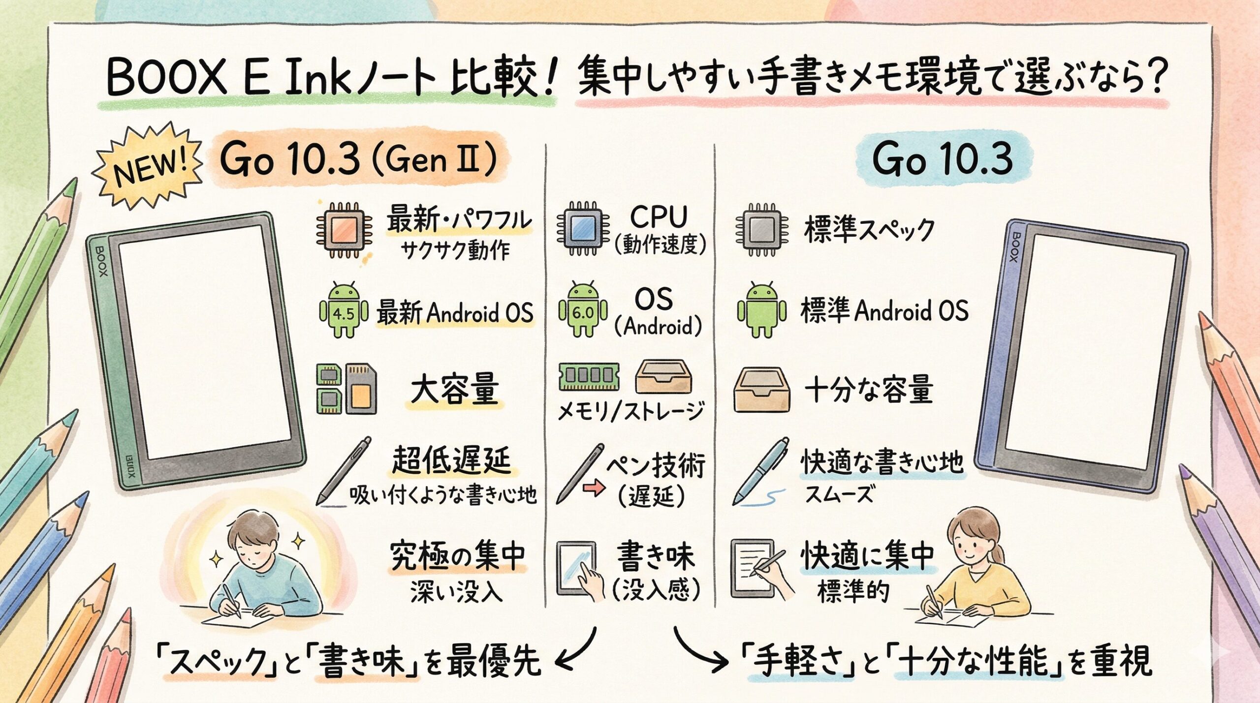 | 今から1台買って、会議メモ・学習ノート・PDF書き込みを気持ちよく続けたい | Go 10.3 (Gen II) |