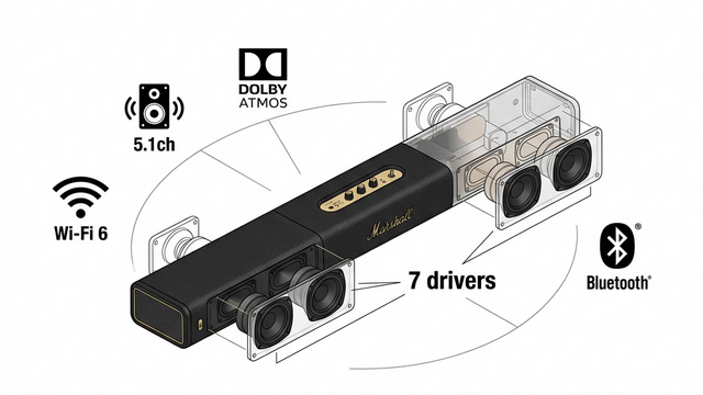 そう迷っているあなたは、すでにかなり良い買い物をしようとしている。Marshall Heston 60は、あの伝説的なギターアンプメーカーが手がけた初のTVサウンドバー。Dolby AtmosとDTS:X対応、7基のドライバー搭載で、音楽もTV映画も一台でまかなえる、インテリアとして飾れる本物の道具だ。