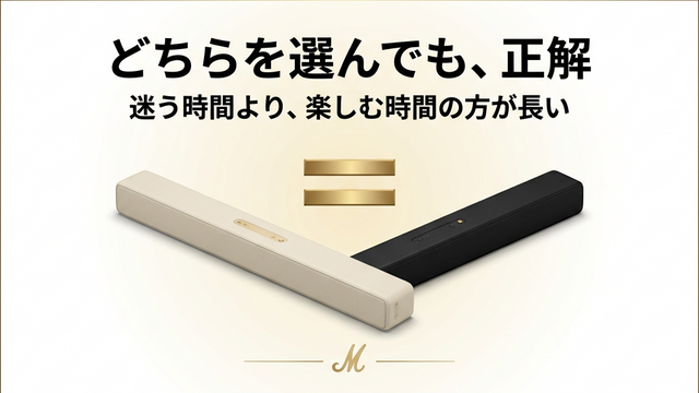 「どちらを選んでも音質は同じ」——それは事実だ。しかし「どちらを選んでも見た目は同じ」ではない。ここで、CreamとBlackの違いをすべて表にまとめる。