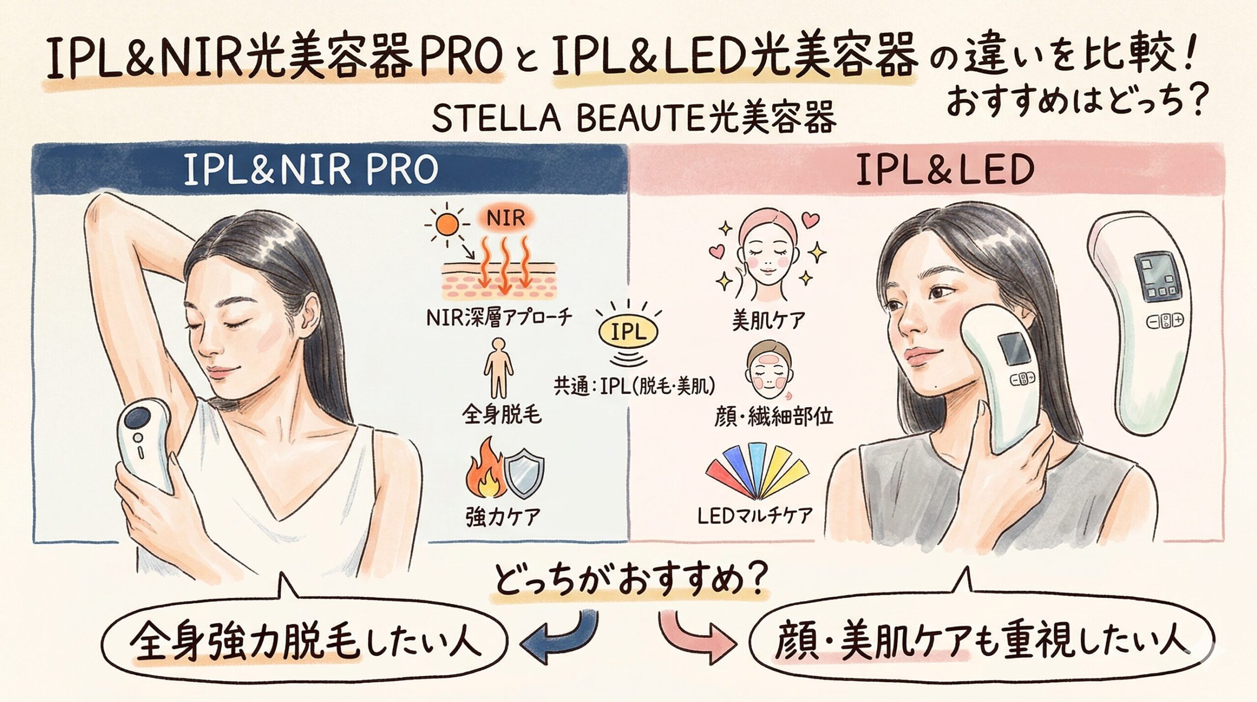 IPL&NIR光美容器 PROとIPL&LED光美容器の違いを比較!おすすめはどっち?STELLA BEAUTE光美容器