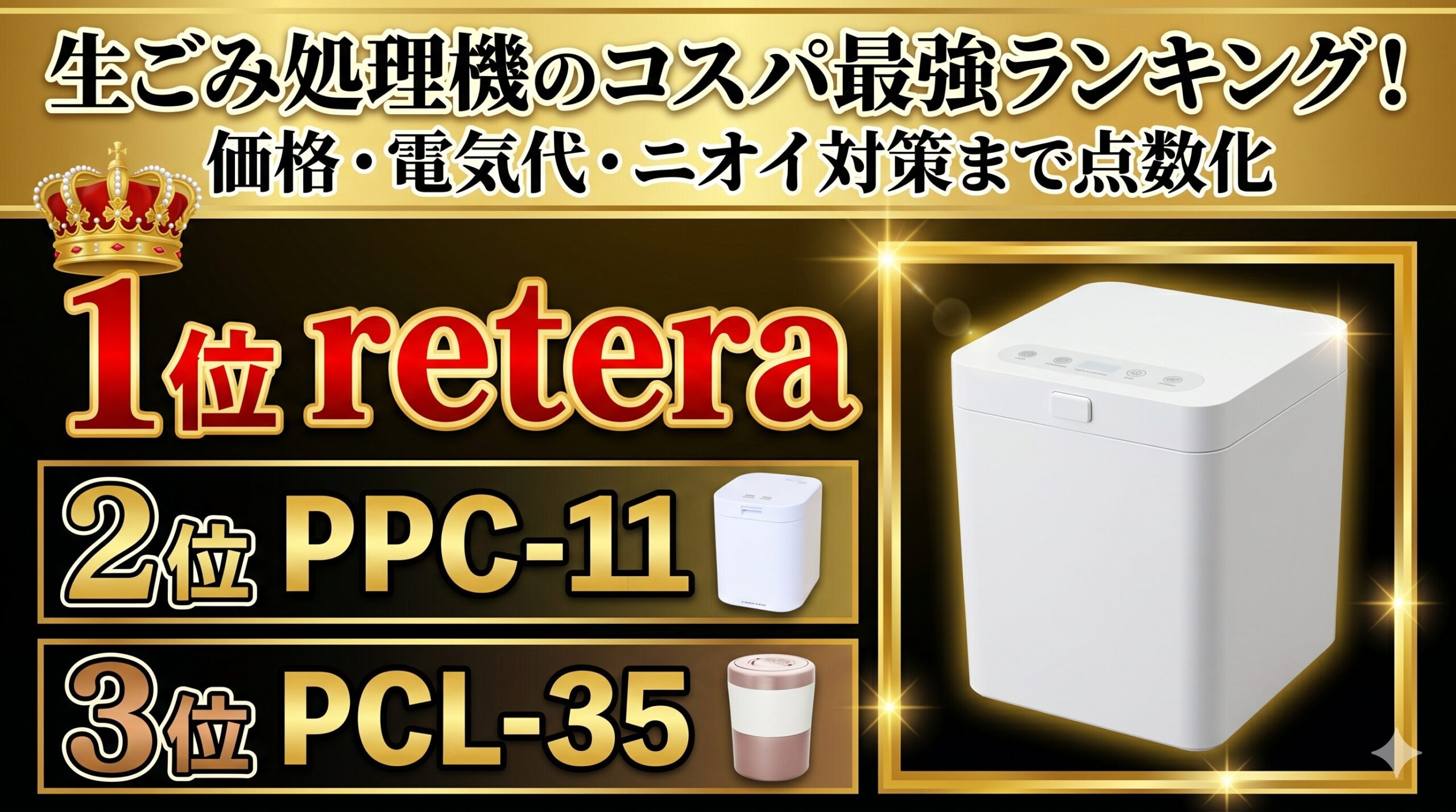 生ごみ処理機のコスパ最強ランキングは、次の結果になりました。