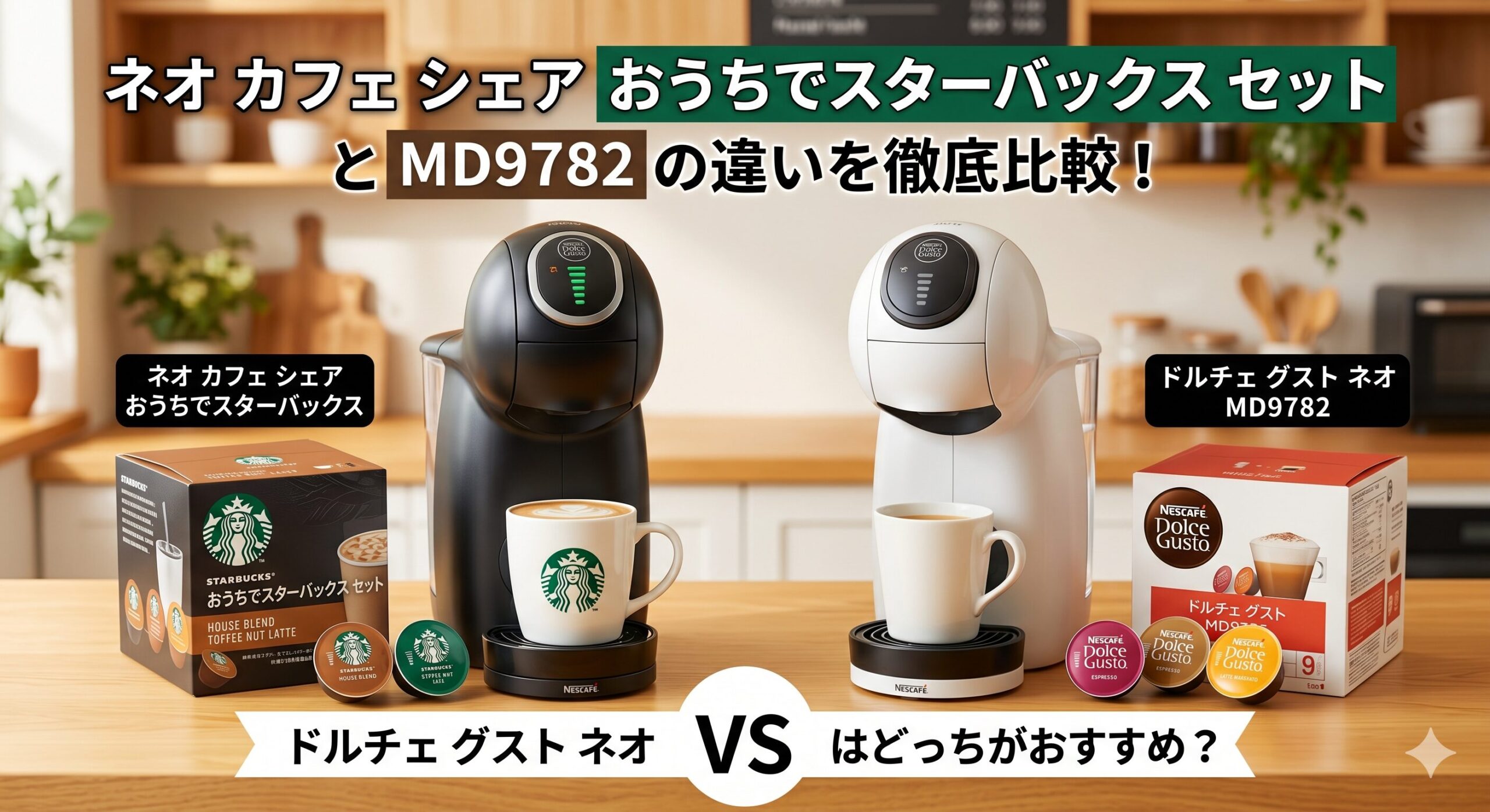 ネオ カフェ シェア おうちでスターバックス セットMD9782 を比べると、体験重視なら新セット、本体コスパ重視なら MD9782 という整理がいちばんわかりやすいです。