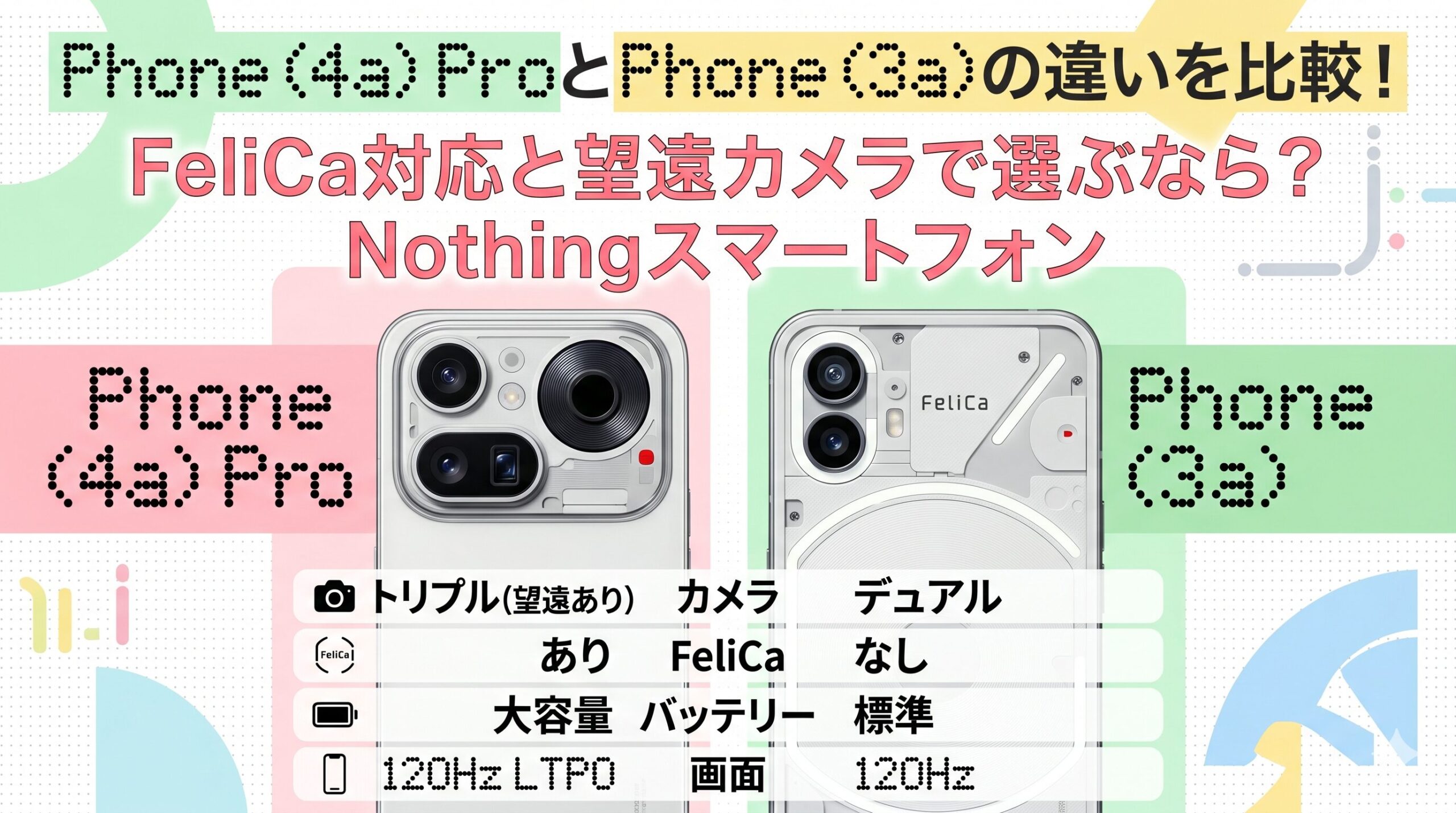 Phone (4a) ProとPhone (3a)の違いを比較!FeliCa対応と望遠カメラで選ぶなら?Nothingスマートフォン