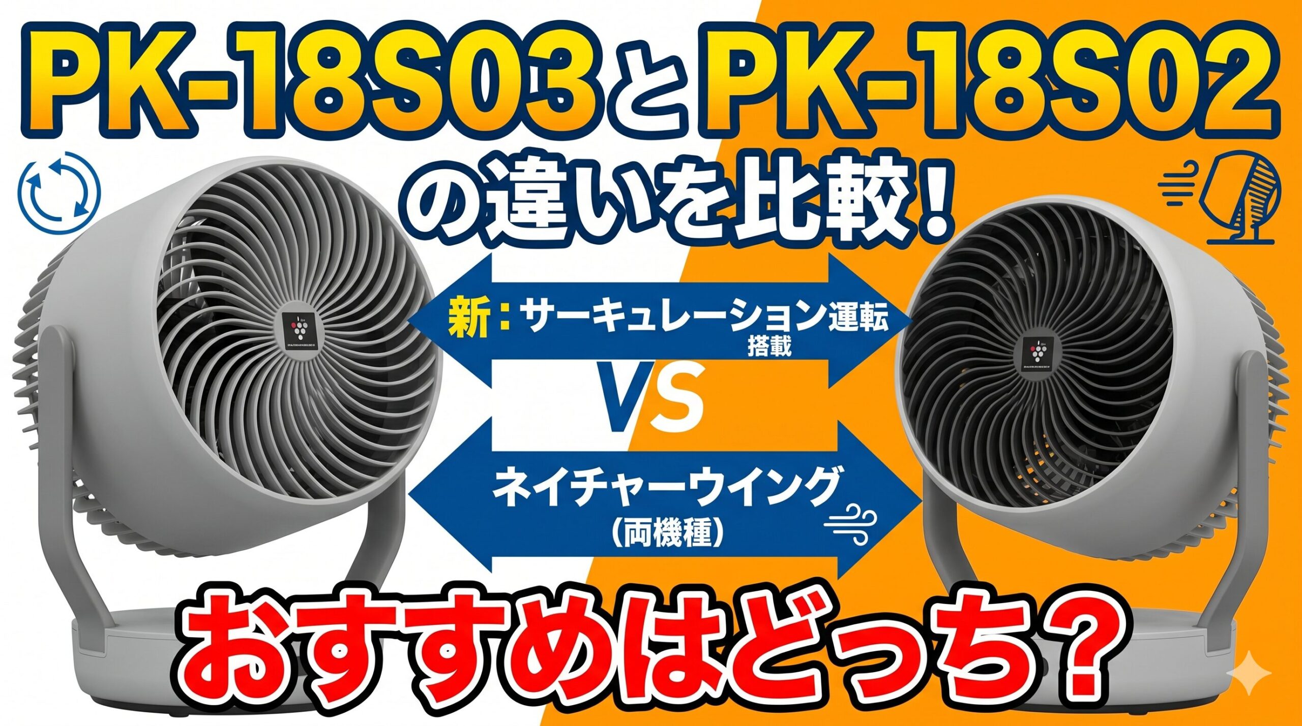 PK-18S03とPK-18S02は、見た目も基本性能もかなり近いサーキュレーターです。
