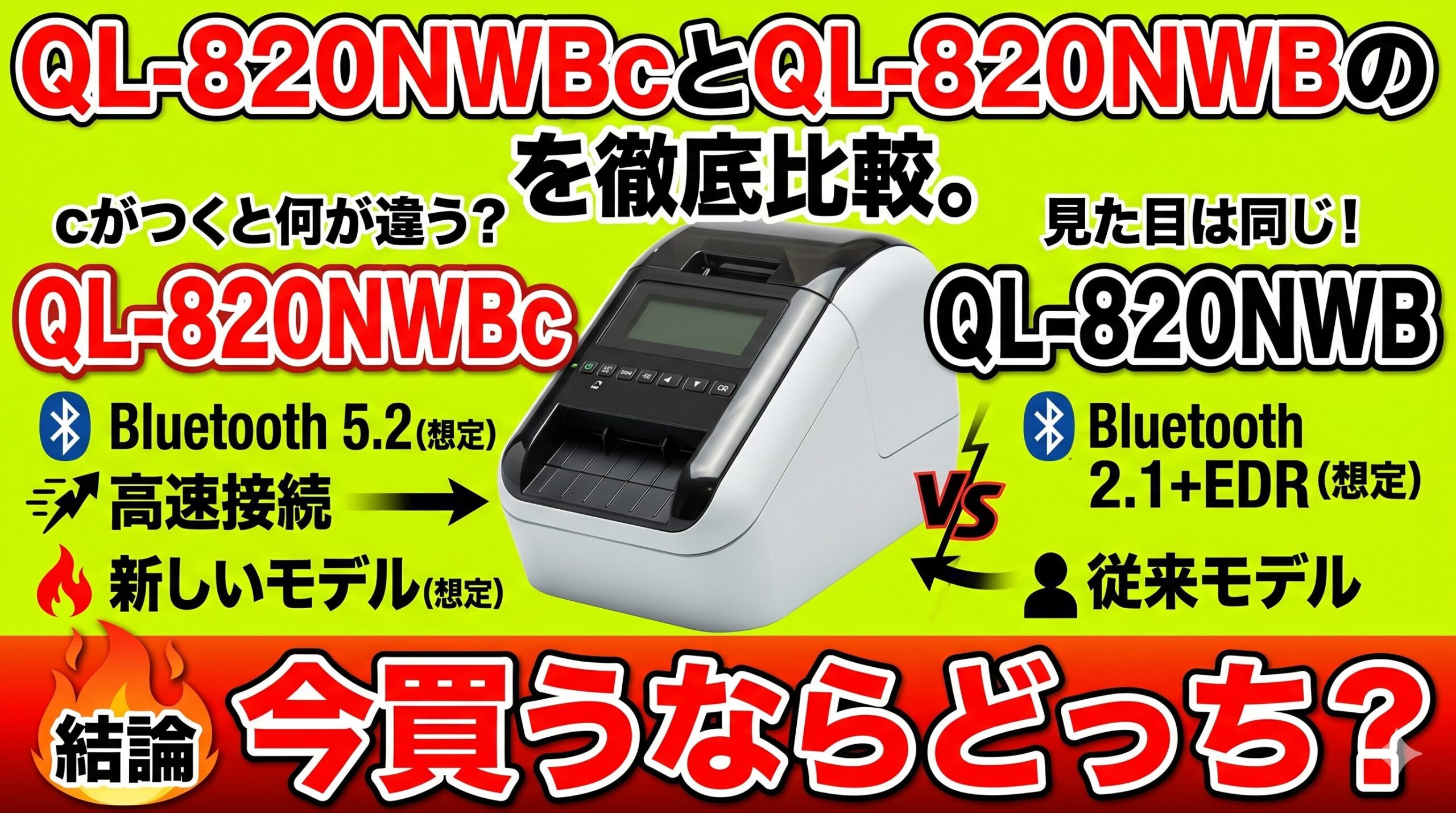 この記事では、ブラザー公式仕様、サポート情報、発売情報、価格・レビュー傾向まで確認しながら、QL-820NWBc と QL-820NWB の違いを整理します。