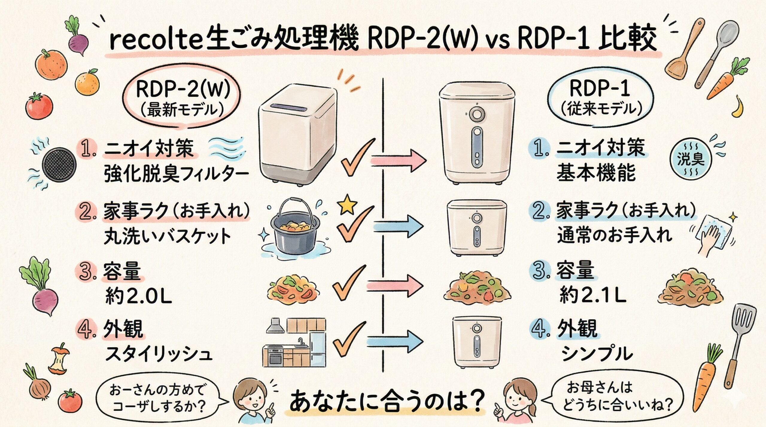 生ごみ処理機デビューでの失敗を減らしやすいのは、やはり RDP-2(W) です。