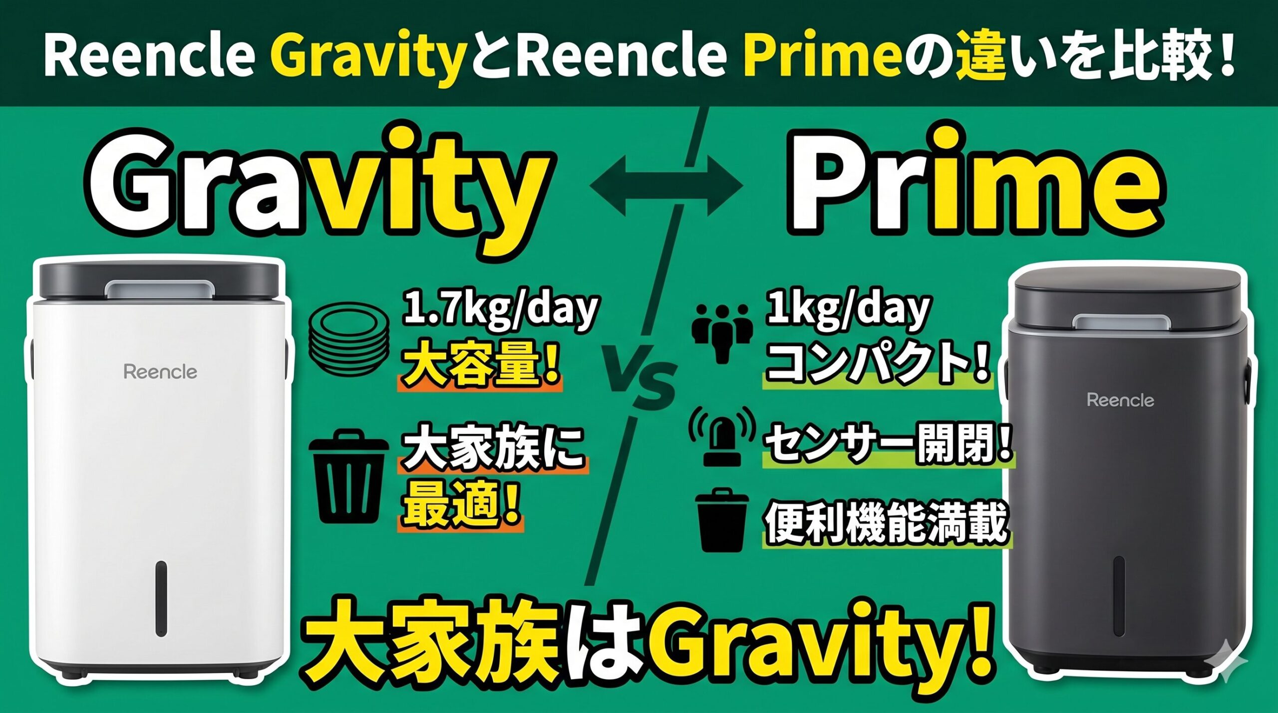 Reencle GravityとReencle Primeの違いを比較!大家族の生ごみ処理で選ぶなら?Reencle生ごみ処理機